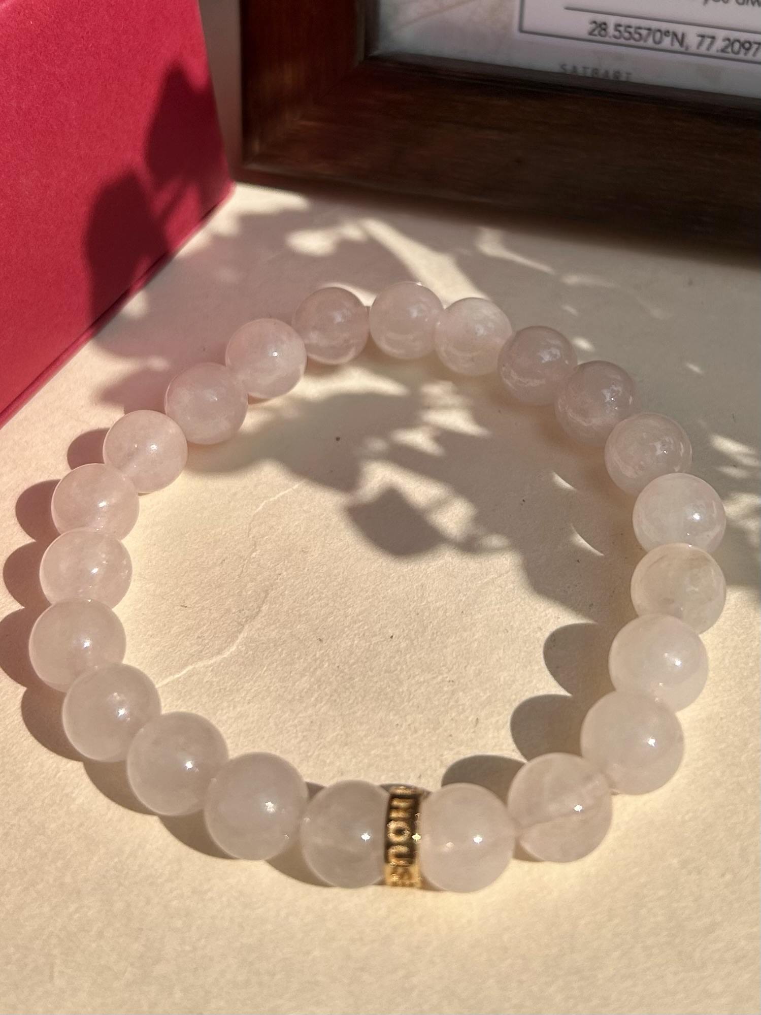 Elevate your everyday style with the serene elegance of our Rose Quartz Bead Bracelet. Hand-strung with soft blush rose quartz beads.