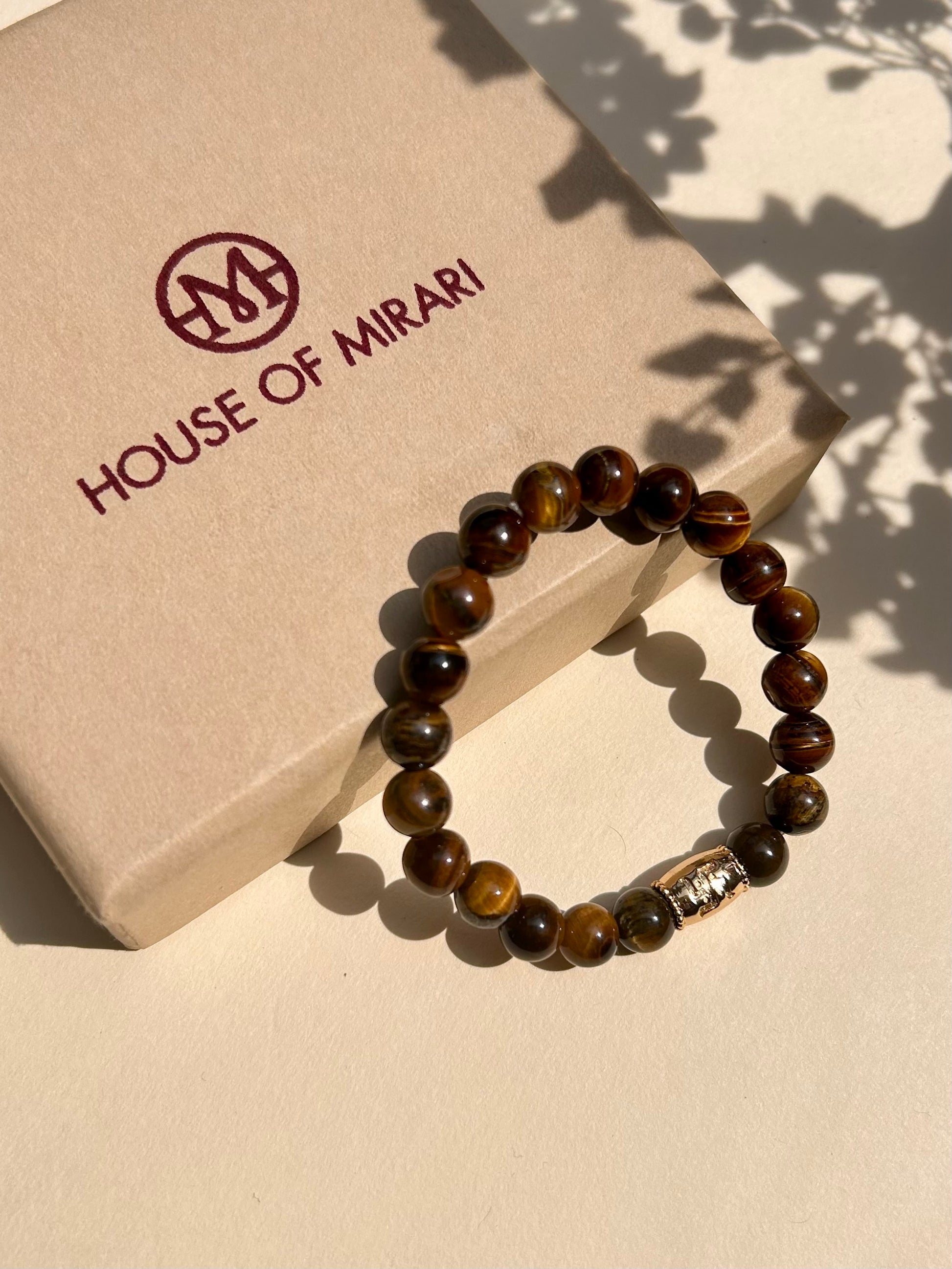Tiger’s Eye Unisex Bead Bracelet with Swastik Motif